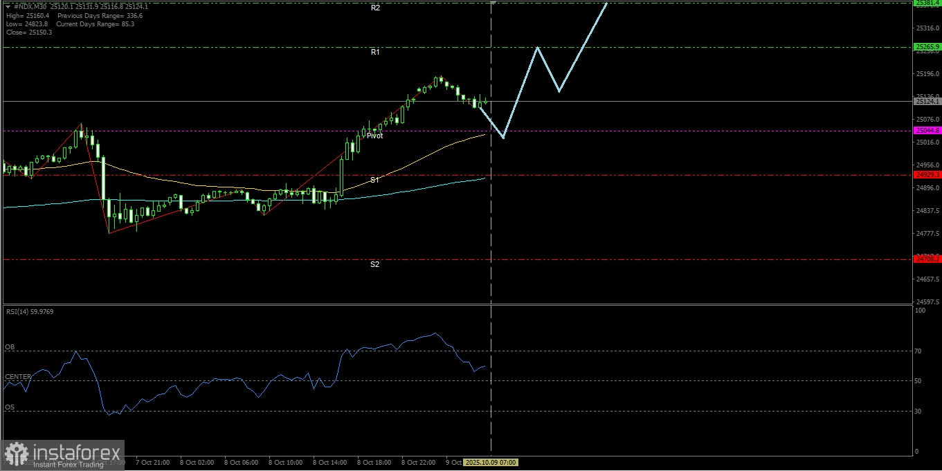 It appears that #NDX will move higher up to its nearest resistance level. Thursday, October 09, 2025.
