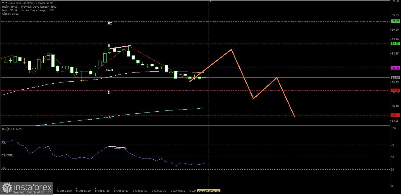 There is potential for a corrective decline in #USDX today. Thursday, October 09, 2025.