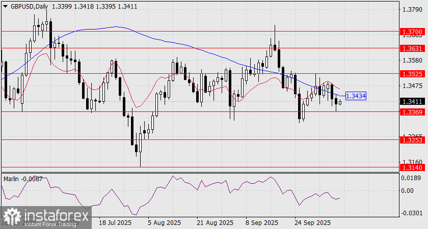 В среду фунт стерлингов достиг целевую поддержку 1.3369, соответствующую минимуму 23 июня. Ранее уровень был определён чуть ниже, по минимуму 16 июля.