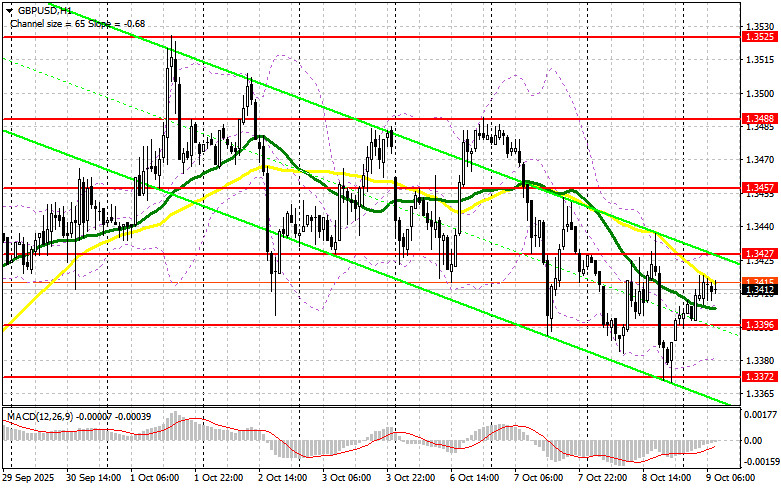 Фунт немного восстановился против доллара после публикации протокола ФРС. Изучив его видно, что с одной стороны шансы на снижение ставок в октябре сохраняются на достаточно высоком уровне, но с другой стороны, позиция представителей ФРС в отношении инфляции и отсутствие данных по рынку труда США, делают такое решение довольно сложным. Сегодня в первой половине дня ожидается лишь выступление члена КМП Банка Англии Кэтрин Л. Манн, и никакой другой статистики по Великобритании нет. В случае медвежьей реакции на заявления, лишь формирование ложного пробоя в районе 1.3396 даст точку входа в длинные позиции с целью роста к сопротивлению 1.3427, образованному по итогам вчерашнего дня. Прорыв и обратный тест сверху-вниз этого диапазона увеличат шансы на новую волну укрепления GBP/USD, что приведет к сносу стоп-приказов продавцов и подходящей точке входа в длинные позиции с возможностью выхода к 1.3457. Самой дальней целью будет область 1.3488, где собираюсь фиксировать прибыль. При сценарии дальнейшего снижения GBP/USD и отсутствия активности со стороны покупателей на 1.3396, медвежий рынок вернется, а пара может снизиться более существенно, что приведет к движению в район 1.3372. Лишь формирование там ложного пробоя будет подходящим условием на открытие длинных позиций. Покупать GBP/USD сразу на отскок собираюсь от минимума 1.3349 с целью коррекции в 30-35 пунктов внутри дня.