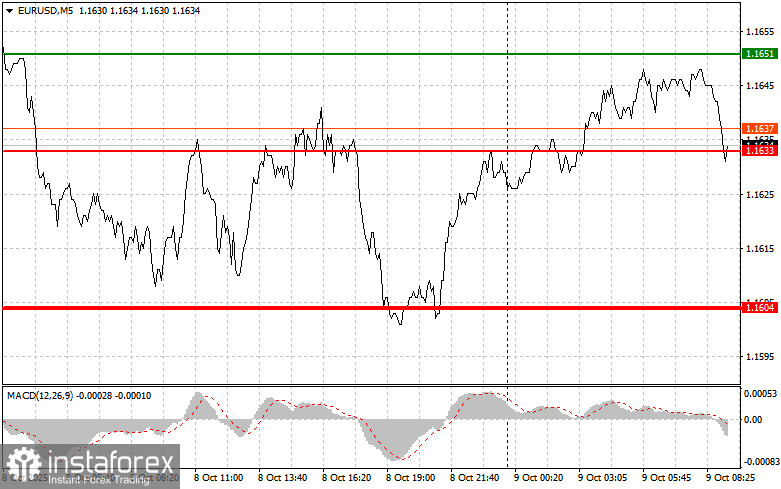 Сценарий №2: покупать евро сегодня также собираюсь в случае двух подряд тестов цены 1.1633 в момент, когда индикатор MACD будет находиться в области перепроданности. Это ограничит нисходящий потенциал пары и приведет к обратному развороту рынка вверх. Можно ожидать рост к противоположным уровням 1.1651 и 1.1679.