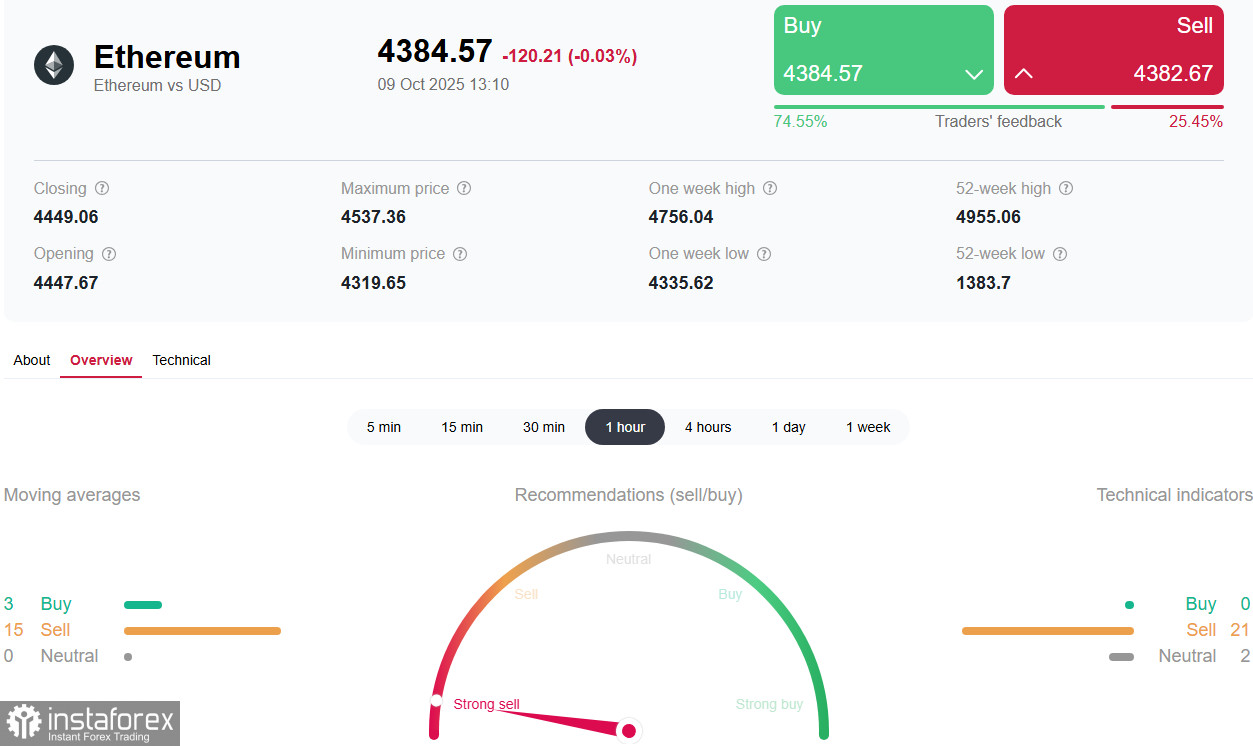 Рекорд 4955.00 был установлен 24 августа текущего года, спустя всего десять дней после достижения биткоином (BTC) своей собственной исторической вершины в районе 124000.00.