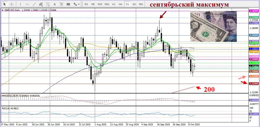 Мировой интерес к рискам заметно вырос после того, как президент США Дональд Трамп отказался от своей угрозы ввести 100%-е пошлины на китайский импорт с 1 ноября. Это происходит на фоне ожиданий, что Федеральная резервная система США еще дважды снизит ставку по кредитам в этом году, а также из-за опасений по поводу затяжной приостановки работы правительства США, что негативно влияет на позиции доллара как валюты-убежища. Кроме того, ожидания того, что Банк Англии оставит процентные ставки без изменений до конца года, создают благоприятные условия для британского фунта, поддерживая пару GBP/USD.