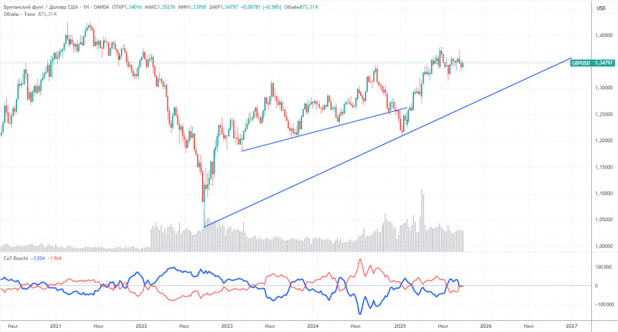 В 2025 году фунт очень сильно вырос, но следует понимать, что причина одна – политика Дональда Трампа. Как только эта причина будет нивелирована, доллар может перейти в рост, но когда это произойдет – не знает никто. Неважно, какими темпами растет или падает нетто-позиция по фунту. По доллару она в любом случае падает и, как правило, более высокими темпами.