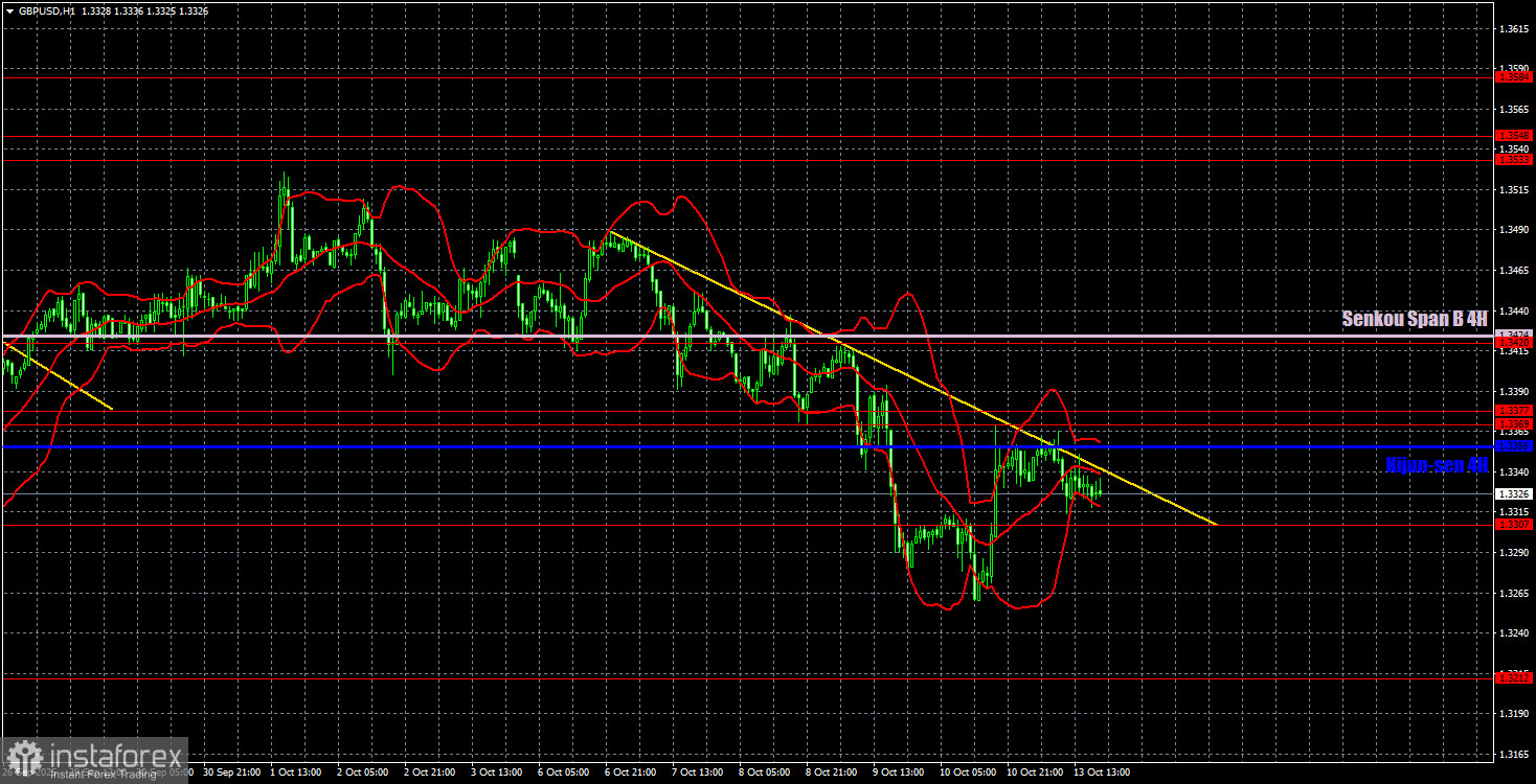 Обзор пары GBP/USD. 14 октября. Китай повышает ставки и готов к эскалации, ФРС отдыхает.