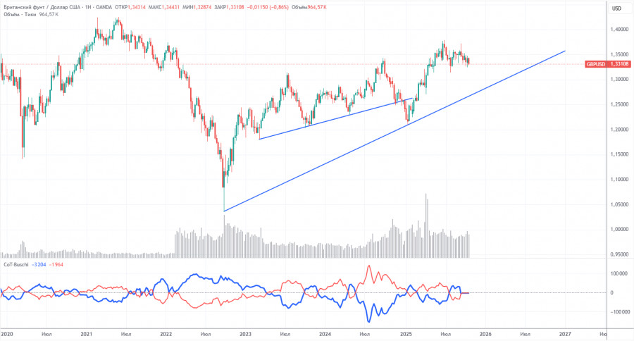 В 2025 году фунт очень сильно вырос, но следует понимать, что причина одна – политика Дональда Трампа. Как только эта причина будет нивелирована, доллар может перейти в рост, но когда это произойдет – не знает никто. Неважно, какими темпами растет или падает нетто-позиция по фунту. По доллару она в любом случае падает и, как правило, более высокими темпами.