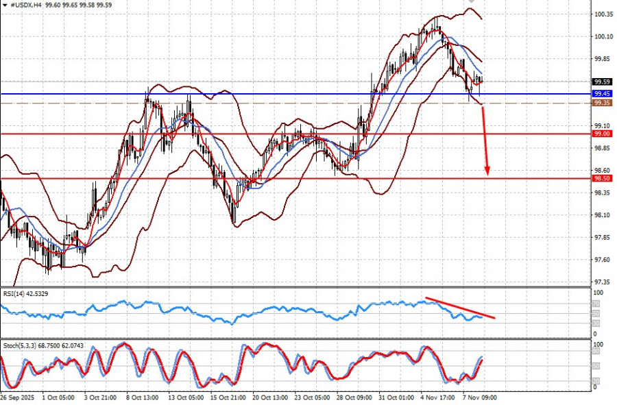 Индекс доллара находится выше уровня поддержки 99.45. Слабый отчет по инфляции окажет давление на доллар к корзине из основных валют. На этой волне показатель может упасть сначала к 99.00, а затем и к 98.50. Уровнем для его продажи может служить отметка 99.35.