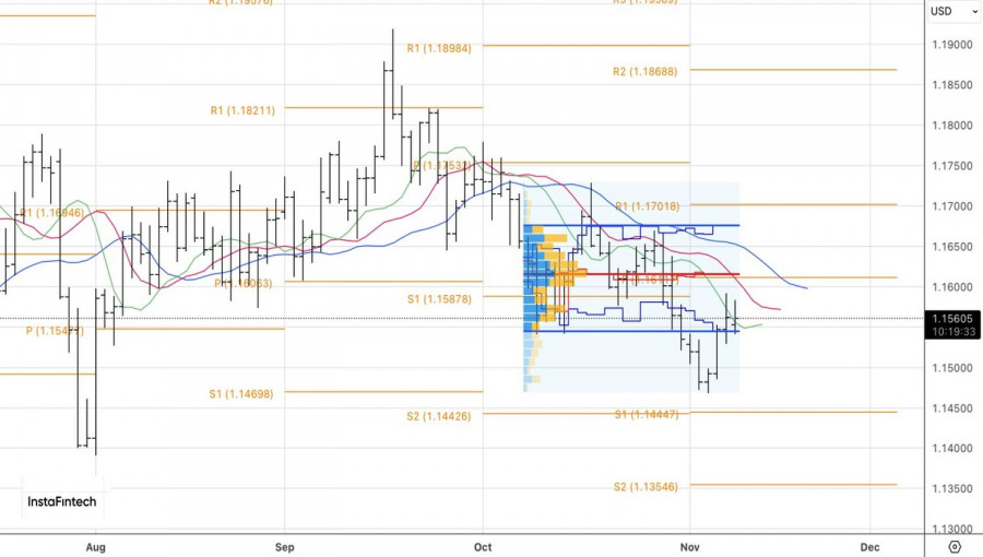 На рубеже октября и ноября доллар США поддерживали шатдаун и связанное с ним переосмысление членами FOMC траектории ставки по федеральным фондам. Большинство чиновников выражало беспокойство по поводу высокой инфляции, что заставило срочный рынок снизить ожидания резки стоимости заимствований в декабре с более чем 90% до 62%. В результате котировки EUR/USD рухнули к минимальной отметке сначала августа.
