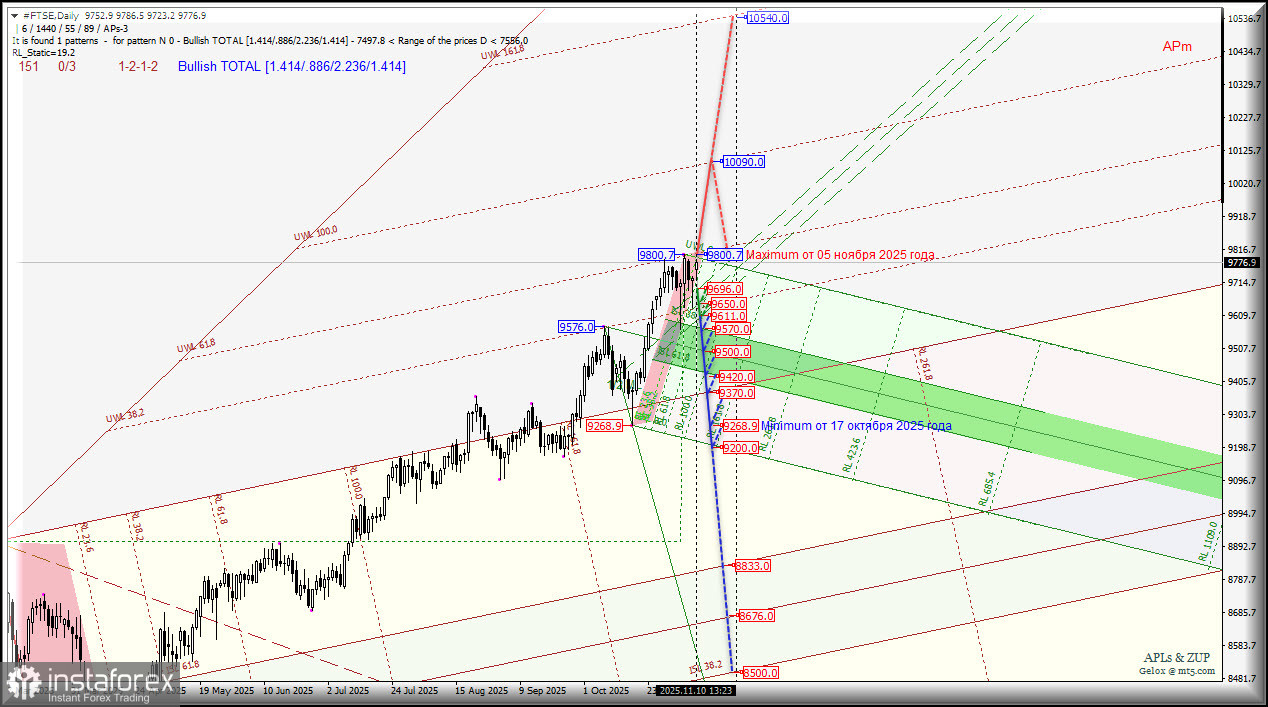 #FTSE - Financial Times Stock Exchange Index - вторая декада ноября - перспективы. Комплексный анализ - вилы Эндрюса APLs & ZUP - с 11 ноября 2025