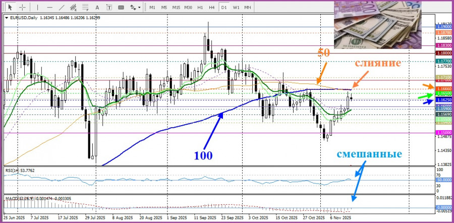 Все больше представителей ФРС выражает осторожность относительно дальнейшего смягчения монетарных мер в условиях нехватки новых экономических данных. Однако трейдеры по-прежнему делят риски — примерно 50% на 50% вероятности декабрьского снижения ставки.