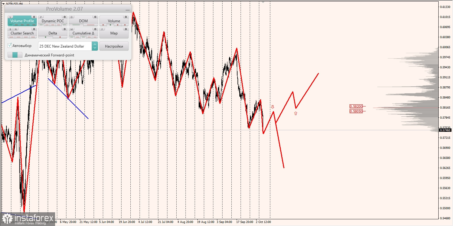Долгосрочная тенденция: в шорт. Максимальное скопление объемов текущего контракта расположено в диапазоне по котировкам 0.58050-0.58200. В настоящий момент по паре совершаются инвестиционные операции ниже указанного диапазона, что говорит о силе продавцов.