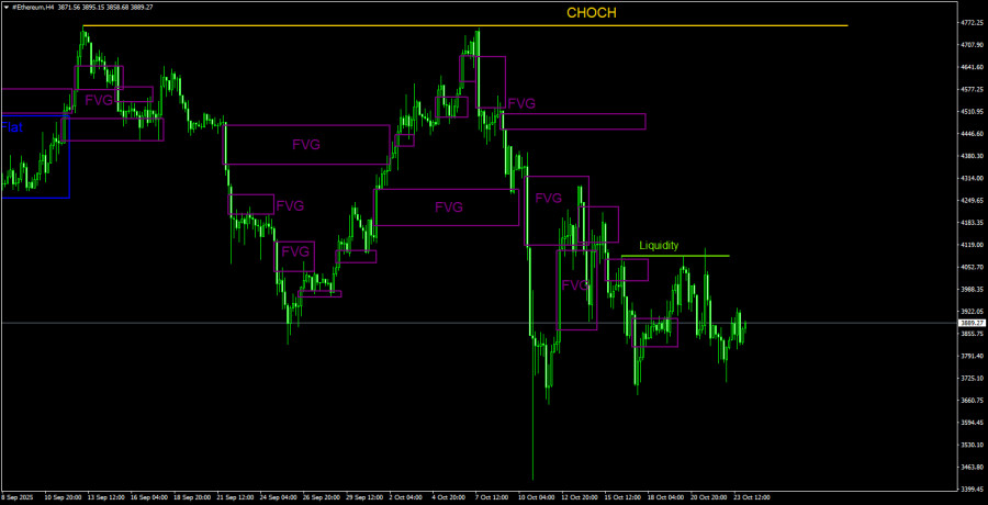 Торговые рекомендации по Эфиру(Ethereum) на 24 октября по системе ICT.