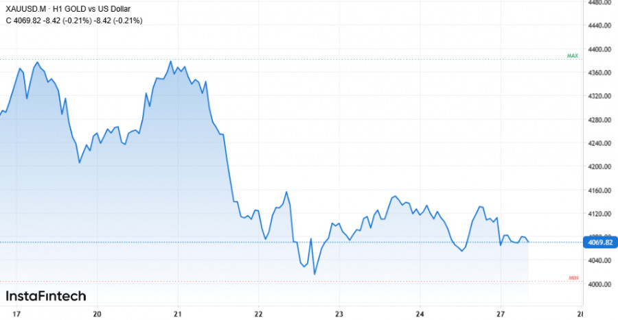 Утро понедельника выдалось для золота безрадостным: спотовые цены снизились на 1,3% до $4 060,80 за унцию, а фьючерсы потеряли 1,6%, опустившись к $4 072,60. И это после рекордных высот выше $4 300, достигнутых всего пару недель назад на волне геополитических опасений. Девять недель устойчивого роста – и трейдеры нашли повод зафиксировать прибыль. Повод оказался более чем убедительным: США и Китай внезапно заговорили о прогрессе в торговых переговорах.