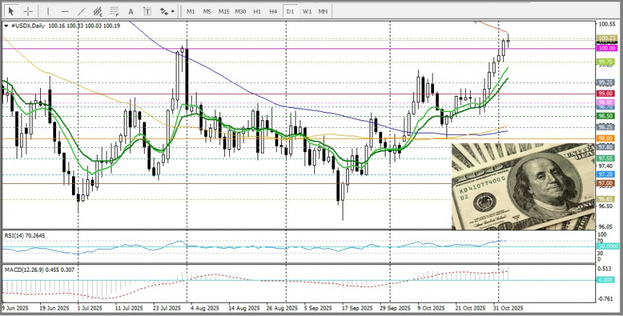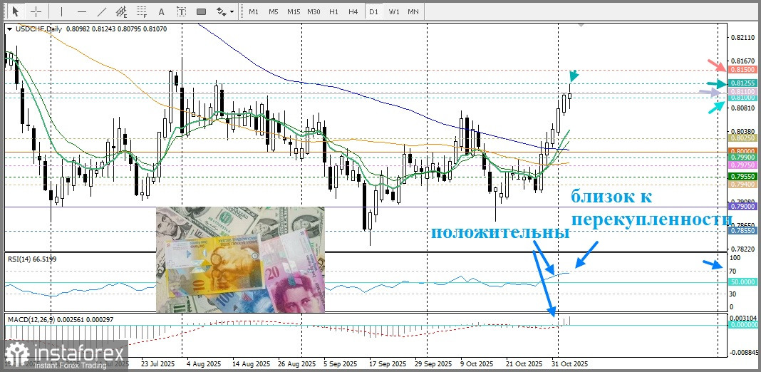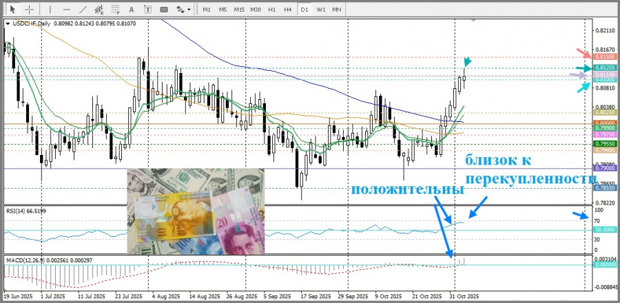 Индекс доллара США (DXY), отражающий курс доллара по отношению к корзине основных валют, достиг более чем трёхмесячного максимума на фоне «ястребиной» позиции Федеральной резервной системы США. Также, председатель ФРС Джером Пауэлл опроверг рыночные ожидания о возможном следующем снижении процентной ставки в декабре. Эти факторы помогают снизить опасения по поводу экономических рисков, связанных с затянувшейся приостановкой работы правительства США, и продолжают поддерживать доллар, тем самым, способствуя росту пары USD/CHF.