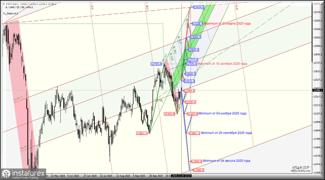 #SMI- Swiss Market Index - вторая декада ноября - перспективы. Комплексный анализ - вилы Эндрюса APLs & ZUP - с 11 ноября 2025
