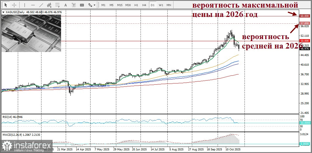 Кроме золота, Metals Focus выразили крайнюю уверенность в перспективе серебра, прогнозируя повышение цен до 60 долларов за унцию в следующем году при среднегодовой цене около 57.