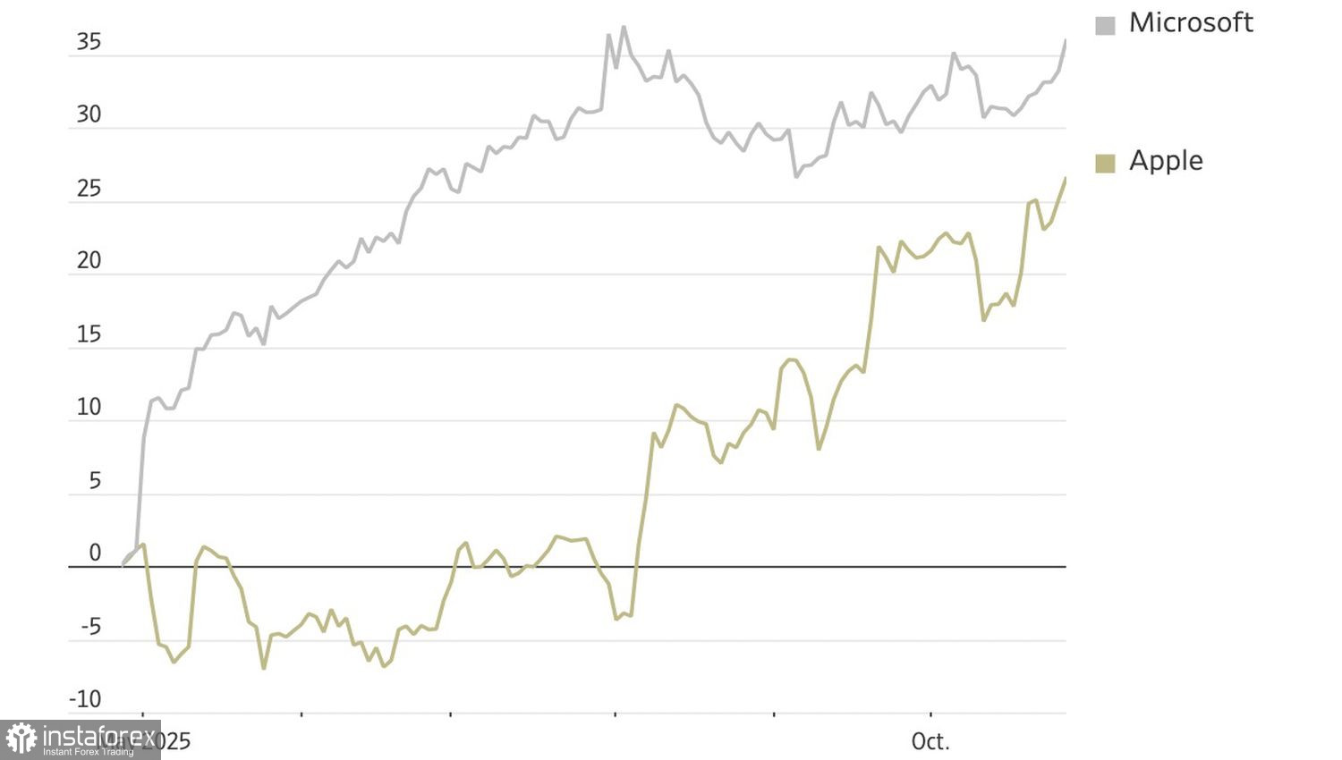 Hiệu suất đầu tư của cổ phiếu Apple và Microsoft